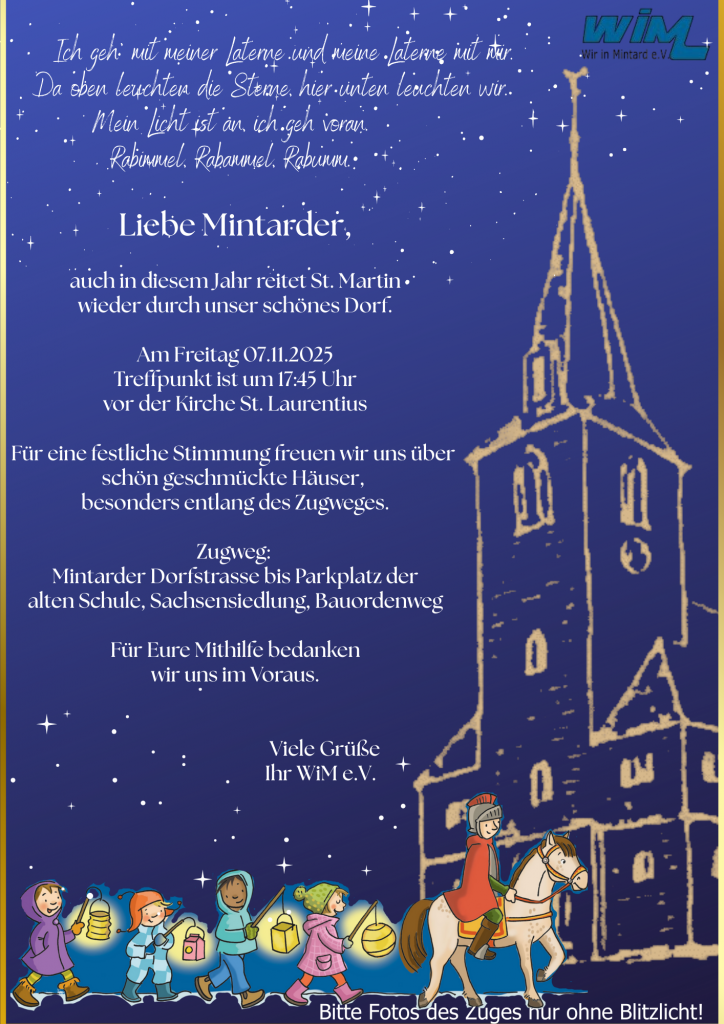 Wir feiern Sankt Martin in Mintard am Freitag, 7. November 2025.